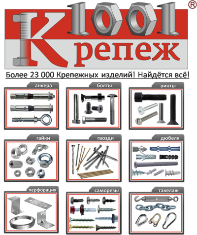 В нашем интернет магазине 1001krep.ru представлено более 23000 позиций крепежных изделий и метизной продукции: болты, винты, гайки, шайбы, анкера, заклепка, трос, цепь, саморезы, шпилька резьбовая, дюбеля, сварочные электроды, опалубку, стопорные кольца, крепеж для электрики, мебельную фурнитуру, гвозди, такелаж, перфорацию, хомуты, шплинты и штифты, проволоку, сетку и инструмент, а так же все виды расходных материалов, такие как (перчатки, диски, буры, сверла, герметики, монтажная пена, монтажные патроны и т.д.)