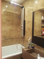• Раздельный санузел в итальянской плитке, отделка искусственным мрамором и аксессуары.
