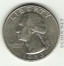 Quarter dollar 1983 года Денвер, перевертыш. - МонетыКод: 907284 Создано: 15-01-2012 18:09