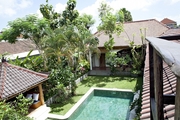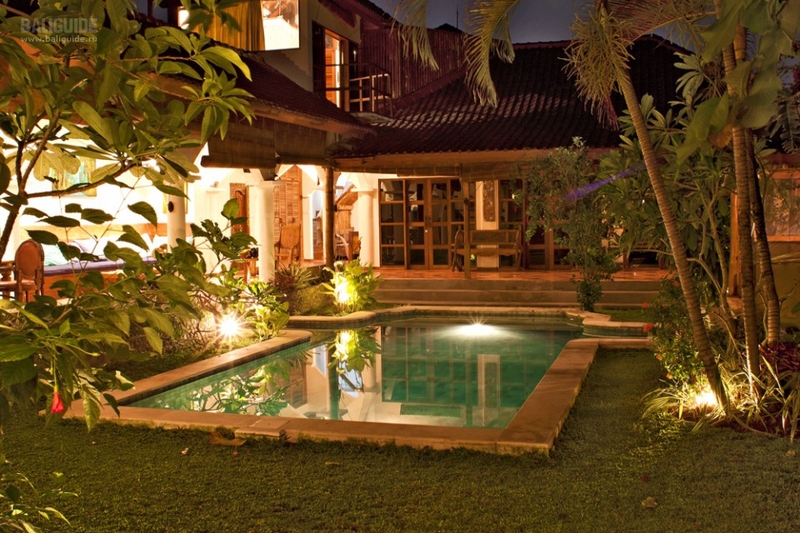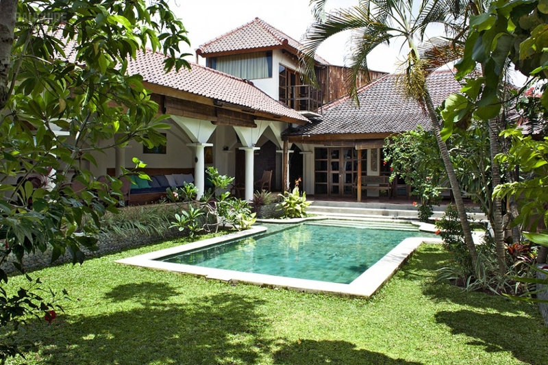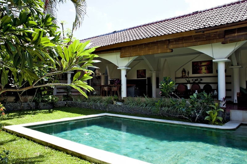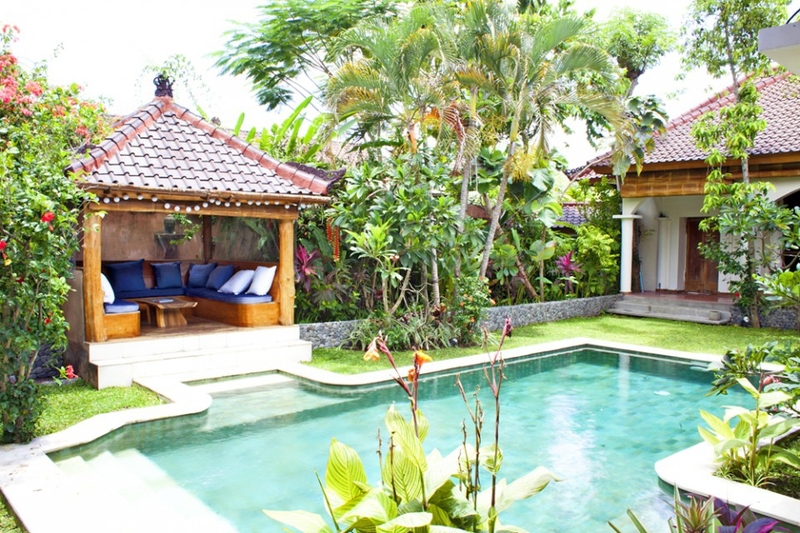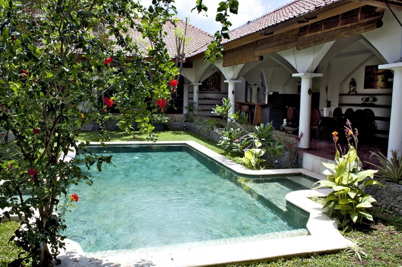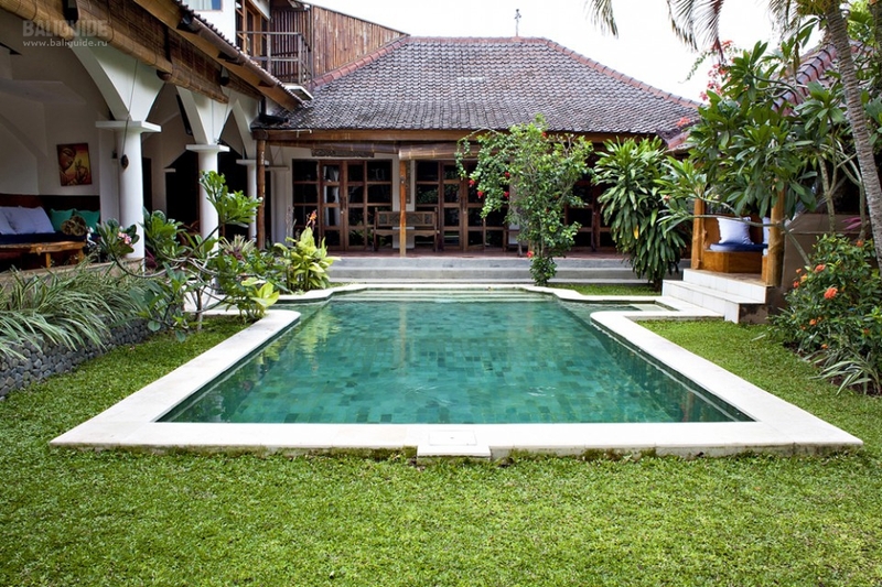 В центре виллы расположен бассейн. В противоположном конце сада находится беседка со столиком и барбекю.