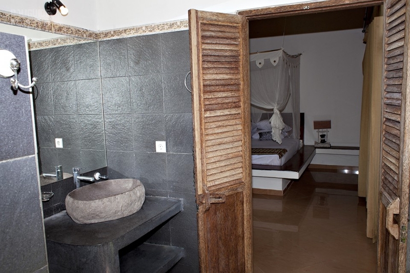 Первая спальня оборудована большой двуспальной кроватью, кондиционером, ванной комнатой с душем под открытым небом, шкафами и большим зеркалом.