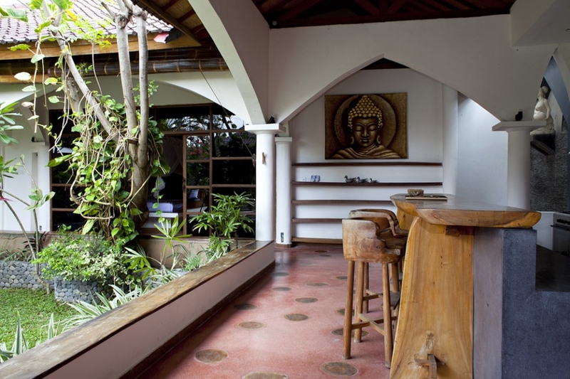 Вилла построена в колониальном стиле. Просторное патио, декорированное арками, соединяет все жилые помещения. По кругу расположены 3 спальни, кухня, выполненная из темного полированного камня с барной стойкой, обеденная зона со столом и креслами на 8 персон, просторный диван с мягкими подушками и плазменной панелью 43 дюйма (DVD, домашний кинотеатр, кабельное ТВ), а также гостевой туалет с душем. Роскошная деревянная лестница ведет на второй этаж в четвертую спальню с балконом.